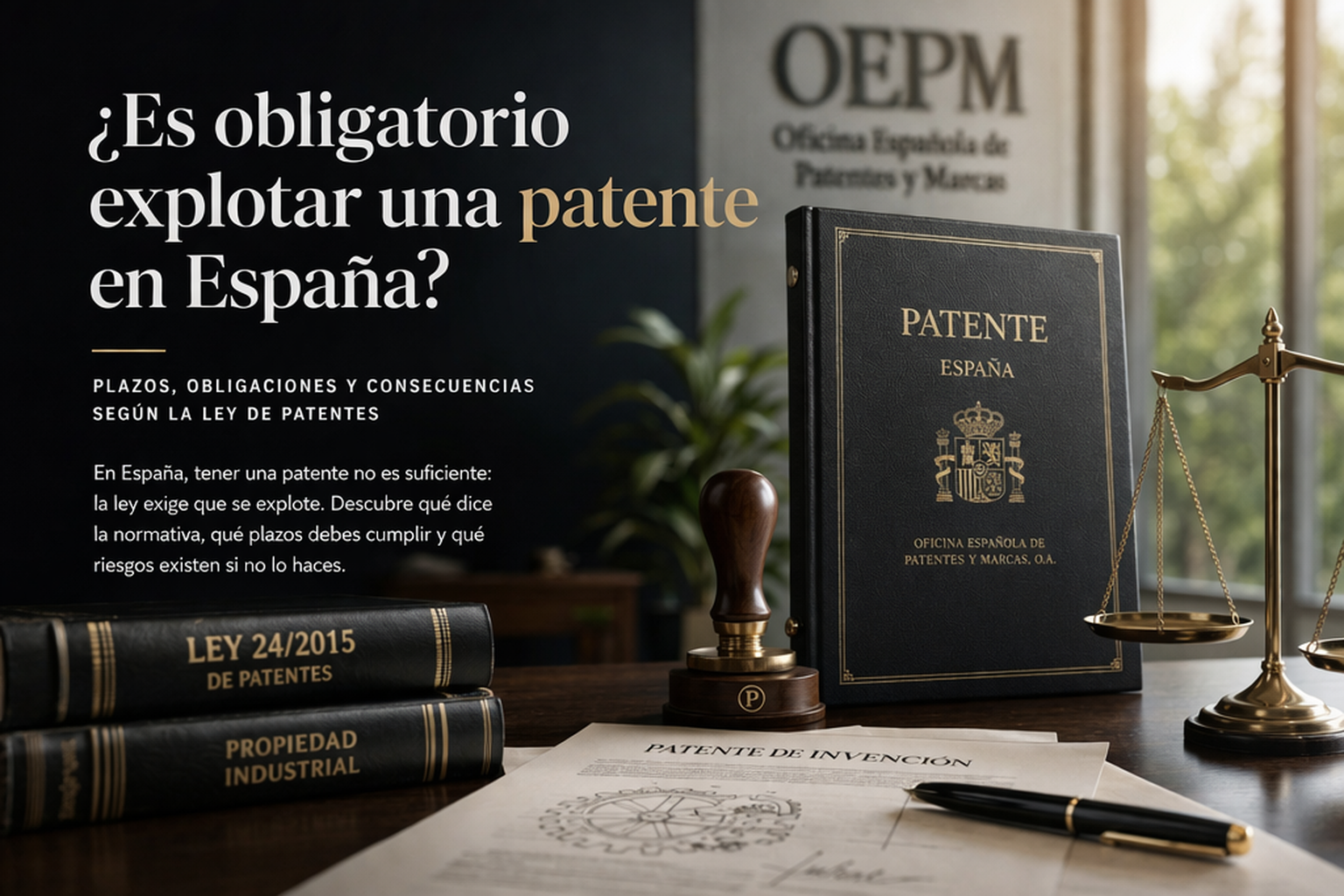La obligación de explotar una patente en España está regulada por la Ley 24/2015 de Patentes, que establece plazos y consecuencias en caso de incumplimiento.